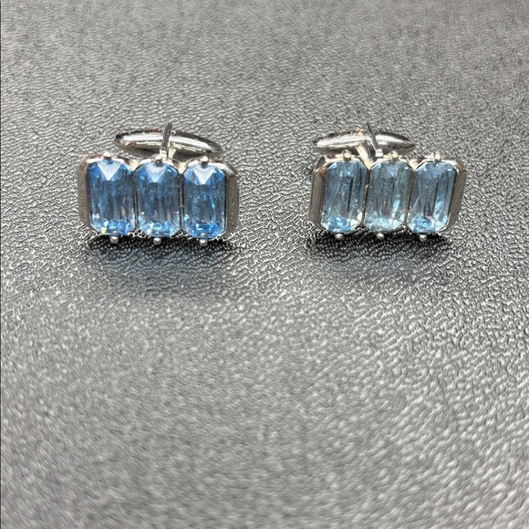 Stunning cufflinks featuring three blue gemstones. Perfect for any occasion.