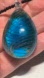 This stunning necklace features a vibrant blue glass pendant, elegantly suspended on a black beaded chain. Perfect for adding a pop of color to any outfit.