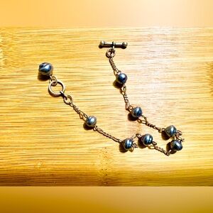 Elegant Blue Gray Metallic Beaded Bracelet Fashion Costume Jewelry Faux Pearl