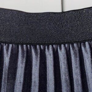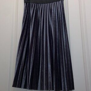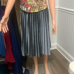 Elegant Blue Gray Midi Pleated Velvet Skirt Small to Medium