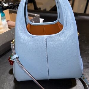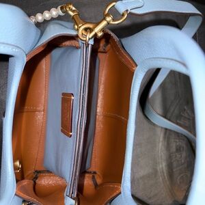 This elegant blue handbag features a chic pearl accent, perfect for adding a touch of sophistication to any outfit. Ideal for both casual and formal occasions. Used twice, pretty much brand new!