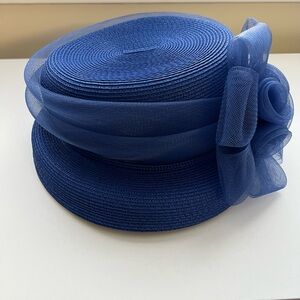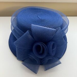 Stylish blue hat featuring a large decorative bow. Perfect for Kentucky Derby, Queen’s Ball, or special occasions. New w tag. Smoke-free and pet-free home. Excellent condition.