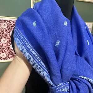 Stylish blue scarf featuring a subtle pattern. Perfect for adding a touch of elegance to any outfit.
