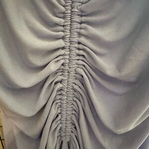 Stylish blue midi dress with ruched detailing. Features a unique strappy design. High low tank dress made of jersey material. Retails for 193.00. PTP about 17". Length about 48". Lots of stretch.