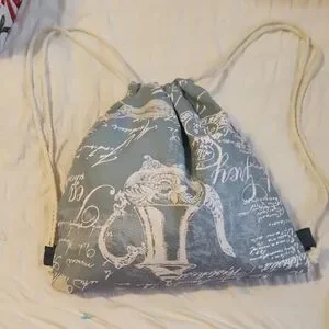 Discover the perfect blend of style and functionality with this elegant blue drawstring backpack. Featuring a unique script design, it's ideal for daily adventures.
