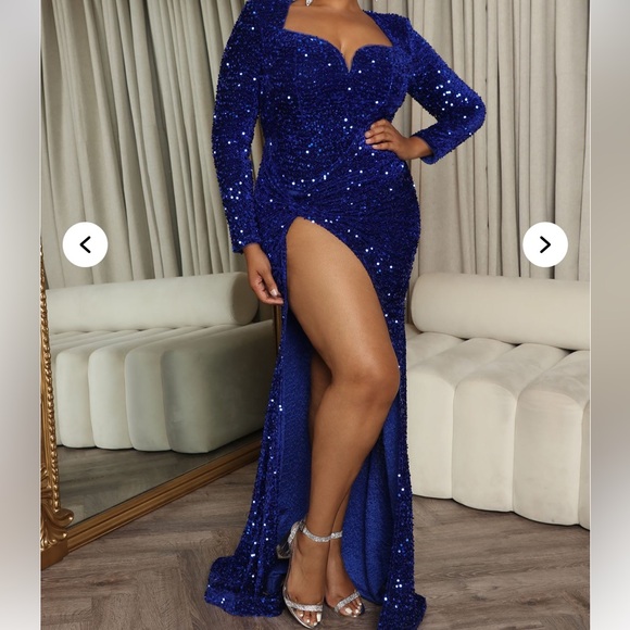 Shimmer in style with this stunning blue sequin gown. Perfect for special occasions, this dress offers a glamorous look that will turn heads.