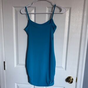 This elegant blue mini dress features a sleek spaghetti strap design, perfect for any occasion. Its bold color makes a stylish statement.