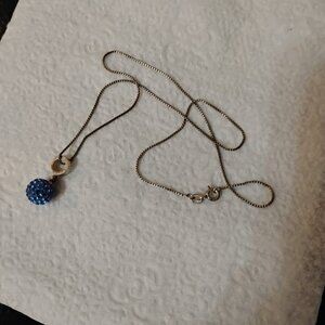 Elegant Blue Sparkly Pendant Sterling Silver 925 Italy Chain Necklace 8.5' /half