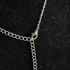Measurements: the stone is big almost a half inch in diameter the chain is 9" long with out the extension the extension is 3".
