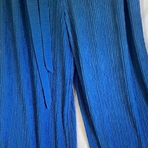 (T8). Step into elegance with this stunning blue strapless jumpsuit. Designed for comfort and style, it's perfect for any occasion. Size 3X, Top 15” stretch to 23” plus, waist 17” stretch to 25” plus. Beautiful flowing pant bottom with pockets! Tie waist belt to match. New condition!