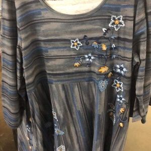This elegant blue striped dress features beautiful floral embroidery, perfect for any occasion. The soft fabric and flattering fit make it a must-have addition to your wardrobe.