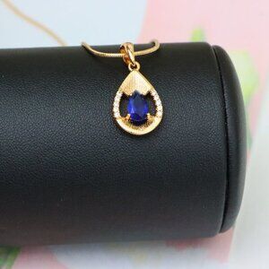 "Elegant Blue Teardrop Pendant with Sparkling Accents and Gold Finish, XPPT1688