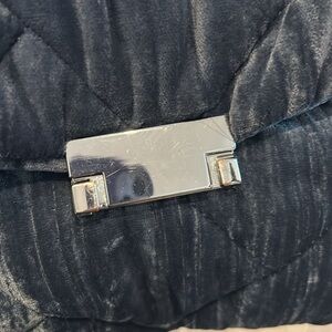 This elegant blue quilted bag features a stylish chain strap, perfect for any occasion. Its sleek design and rich color make it a must-have accessory.