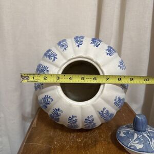 Elegant Blue & White Porcelain Vase Jar Foo Dog Floral Qianlong VTG Hand Painted