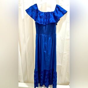 Step out in style with this elegant blue dress, perfect for any occasion. The intricate design adds a touch of sophistication. Ideal for those who love a blend of comfort and fashion.
