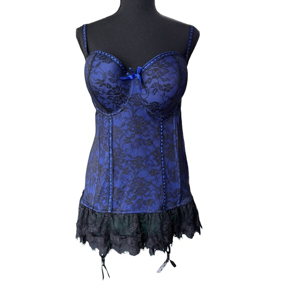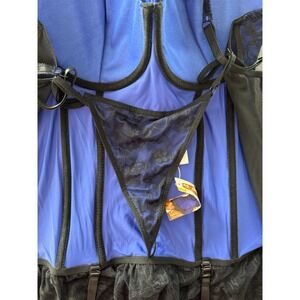 Enhance your silhouette with this elegant blue and black lace shapewear. Perfect for adding a touch of sophistication to your intimate collection.