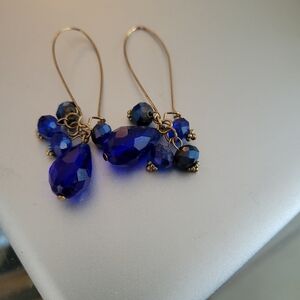 Add a touch of elegance with these stunning blue and gold dangle earrings. Perfect for any occasion.