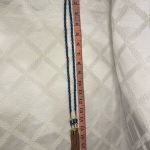 This stunning necklace features a blend of blue and gold tone beads, perfect for adding a touch of elegance to any outfit. The intricate design and vibrant colors make it a must-have accessory.
