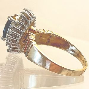 This stunning women's ring features a captivating blue gemstone set in a luxurious gold band. Perfect for adding a touch of elegance to any outfit.