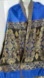 Add a touch of elegance to your outfit with this stunning blue and gold scarf. Perfect for any occasion.
