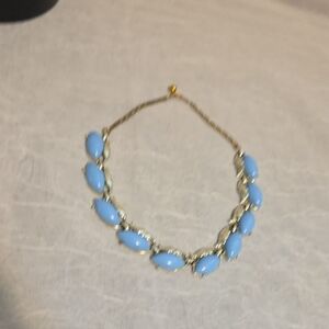 This stunning women's necklace features elegant blue stones set in a luxurious silver design. Perfect for adding a touch of sophistication to any outfit. this is a piece of estate sale jewelry. Unknown Brand, no marks on metal quality.
