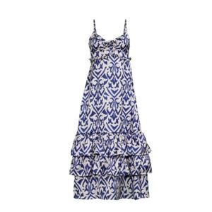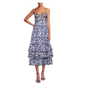 Embrace elegance with this stunning blue and white midi dress, perfect for any occasion.