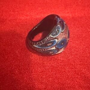 This elegant women's ring features shades of stunning blue and silver with a unique pattern. This ring is handmade if glass so highly unlikely youll find many exact patterns. Perfect for adding a touch of sophistication to any outfit.