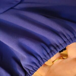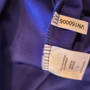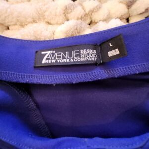 This elegant blue blouse features unique, flowing sleeve and front bow. Perfect for any occasion.