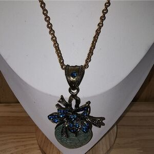 Elegant Blue and Gold Pendant Necklace 17" Marked India