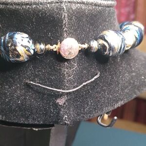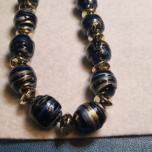 This stunning necklace features a blend of blue and gold beads, perfect for adding a touch of elegance to any outfit. Ideal for both casual and formal occasions.