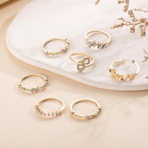 Elegant Boho Gold Crystal Stacking Rings Set - Moon, Star & Butterfly Designs