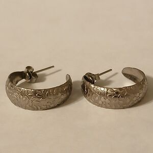 Elegant Boho Silver Tone Floral Flower Nature Theme Hoop Cuff Earrings