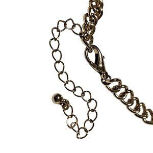 This bold necklace features oversized pink enamel links connected by a gold-tone chain. The adjustable clasp ensures a comfortable and secure fit.