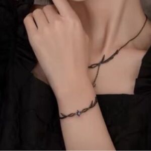 This elegant silver bracelet features a stunning blue crystal gemstone at its center. Perfect for adding a touch of sophistication to any outfit.