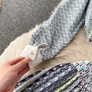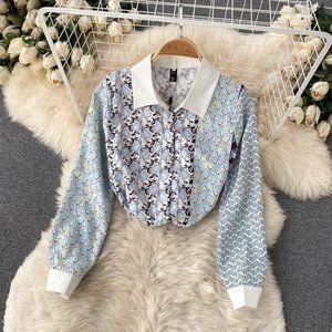 1x Elegant Breasted Print Tops And Midi Skirt Set