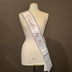 Celebrate in style with this elegant Bride-to-Be sash. Featuring sparkling rhinestones on a white base, it's perfect for bridal showers and bachelorette parties.