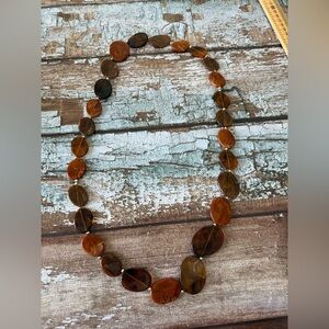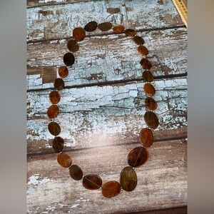 This elegant brown beaded necklace adds a touch of sophistication to any outfit. Perfect for both casual and formal occasions.