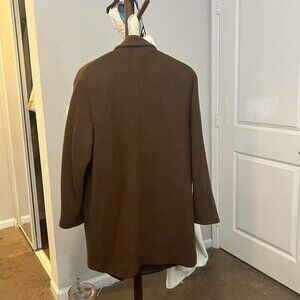 Stay warm and stylish with this elegant brown double-breasted coat. Perfect for any occasion, this coat offers both comfort and sophistication.