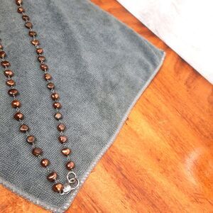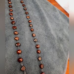 Chic necklace with lustrous iridescent chocolate brown freshwater pearls. Perfect for any occasion. This necklace is made from freshwater pearls and has a 16 1/2" drop. Please see the pictures for details. I do consider reasonable offers!! All items are shipped the same or the next business day!! Bundle two or more items and receive an automatic 15% discount and combined shipping!!