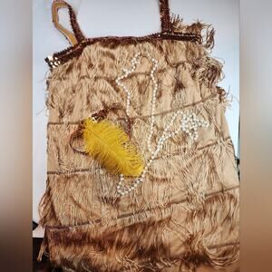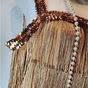 Elegant Brown Fringe Midi Dress