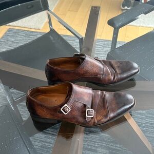 Step into elegance with these brown leather double monk strap Oxfords. Ideal for formal events and adding a touch of sophistication to your wardrobe.