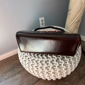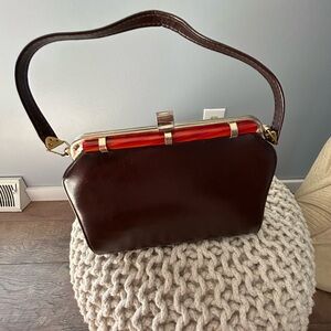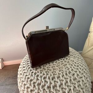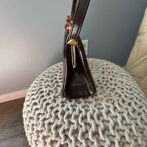 Elegant Brown Leather Handbag 9.5” L x 7” H Base width 4” Gold hardware clasp