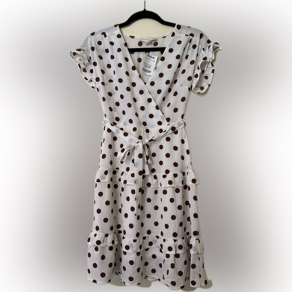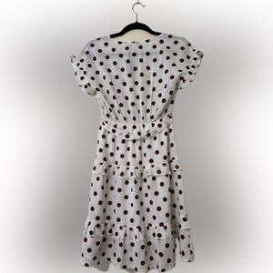 Step out in style with this elegant brown polka dot midi dress. Its flattering fit and playful design make it perfect for any occasion.