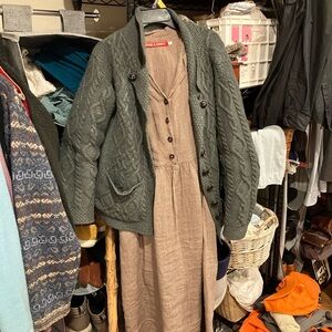 Discover elegance with this brown striped dress!nIt was in normal rotation still in great condition. No flaws. No scents. Pyne and Smith I forget the name I think it’s called sandalwood.#notperfectlinen. #pyne&smith #linendress