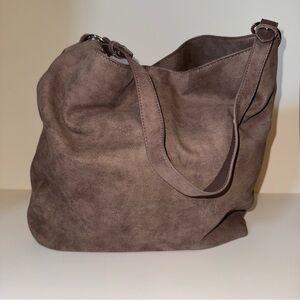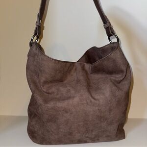 Discover the elegance of this brown suede shoulder bag, perfect for any occasion. Its sleek design and soft texture make it a must-have accessory.