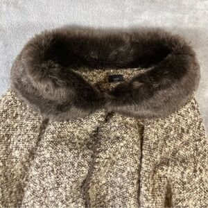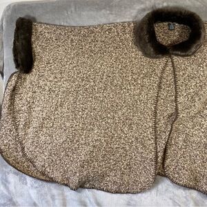 Elegant Brown & Tan Women's Boucle Knit Cape Sweater with Faux Fur Trim