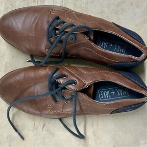 These stylish dress shoes feature a sophisticated blend of brown and blue, ideal for formal occasions. The durable rubber soles are designed with a textured pattern for excellent grip and comfort. Enhanced arch support provides a comfortable fit for all-day wear. Pre-loved condition a few scuffs that can be cleaned up and or filled in with leather dye kid size 3.