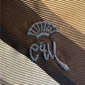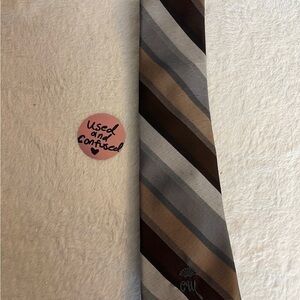 Enhance your wardrobe with this elegant brown and gray striped tie. Ideal for formal events, it adds a touch of sophistication to any outfit.