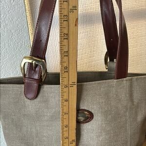 This sophisticated tote bag combines a classic brown and tan color palette with a structured design, making it ideal for everyday use. Crafted with attention to detail, it features a durable construction and a sleek, tapered shape that adds a touch of elegance to any outfit.