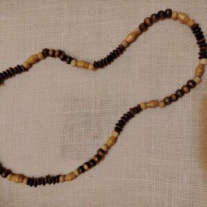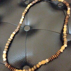 Elegant Brown and Tan Wooden Beaded Necklace Vary Shapes
